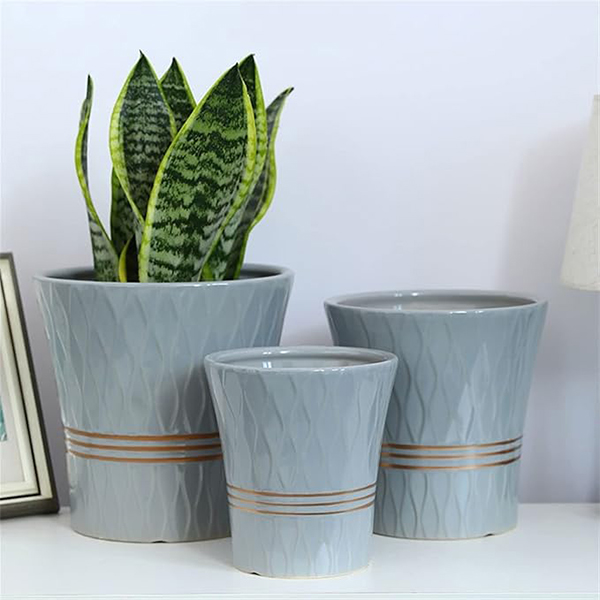 & Free ShippingGaiši zilas keramikas pods ar viļņotu rakstu un zeltainām līnijām. Stilīgs un izturīgs risinājums augiem vai interjera dekoram.