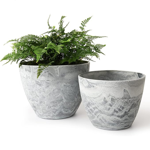 Šis moderns cementa puķu podu komplekts piešķirs jūsu mājām vai dārzam dabisku un stilīgu izskatu. Katram podam ir unikāla pelēka marmora tekstūra, kas rada elegantas, rokām darinātas virsmas efektu. Tie ir izgatavoti no izturīga materiāla, kas nodrošina ilgmūžību un stabilitāti gan iekštelpās, gan ārā. Podi ir piemēroti dažādu augu audzēšanai – no zaļām papardēm līdz ziedošām kompozīcijām. To neitrālā krāsa lieliski sader ar jebkuru interjeru vai dārza stilu. Šis komplekts ir gan praktisks, gan dekoratīvs elements, kas izceļ katra auga skaistumu.